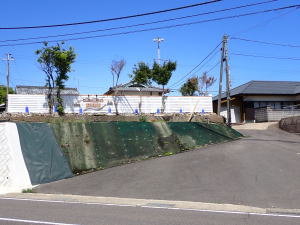 肥料を入れて土を混ぜ、ゴーヤの種を植えたところ、ゴーヤが芽を出す気配がなく、仕方なくホームセンターで苗を三種類、白いゴーヤ、大きめのゴーヤ、中くらいのゴーヤのそれぞれ長さが約 1m 位の苗を、約 30 ~ 40cm くらいの間隔で植えたところ、これくらいにまで育ってしまいました!!